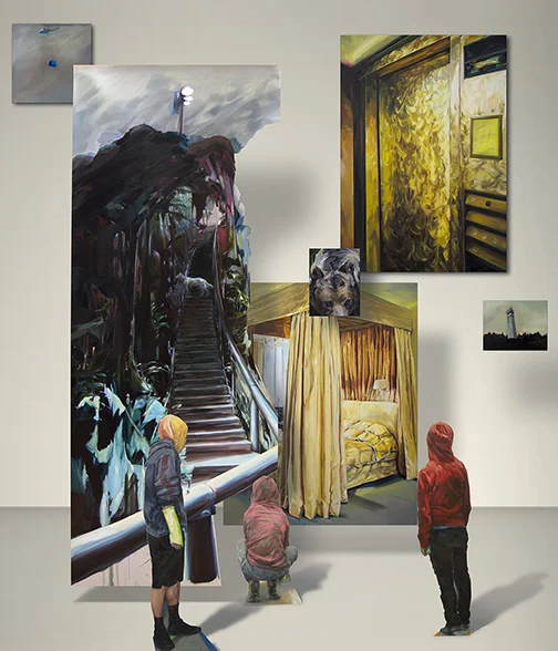 Her environmental scale installations include combinations of paintings, sculptures, constructions video and projection, creating installations incorporating both real and illusionary space, transforming exhibition spaces into a composite of alternate realities. The viewer is always considered to be the final element within the installation.